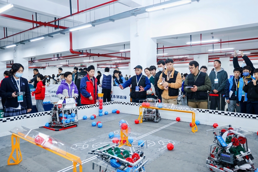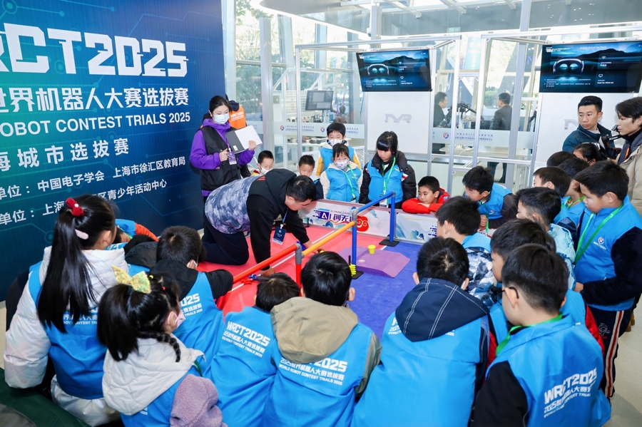 2025年世界机器人大赛上海城市选拔赛在新落成的上海市徐汇区青少年活动中心STEM教育体验中心开幕(下同)