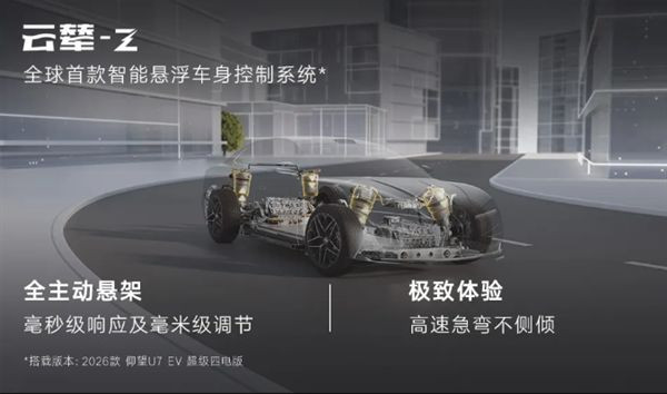 动力上及底盘上,四电机综合功率1200匹,零百加速3.5秒,CLTC纯电续航180km;而云辇-P智能车身控制系统,配备了高度可调悬架,最大可调范围达到150mm。