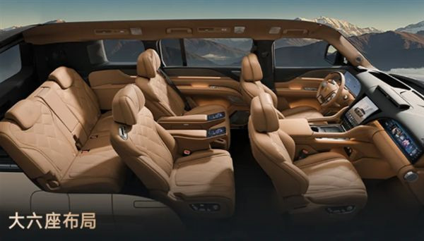 车内配备23.6英寸液晶仪表屏+12.8英寸中控屏+23.6英寸副驾娱乐屏。全车为大六座布局,第二排配备独立零重力座椅。