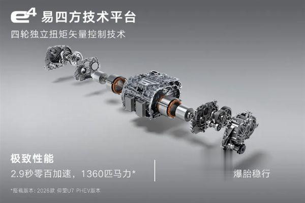 纯电版配备易四方四电机动力系统,总功率高达1300匹。配备双向20度智能后轮转向+易四方敏捷转向功能,转弯半径为4.85米,原地掉头功能迎来升级,15秒可实现窄路快速掉头,还可实现平行横移以及易四方泊车功能。
