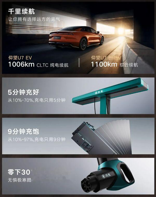 仰望作为比亚迪家族的最高端豪华品牌,此次新款车型全系搭载第二代刀片电池技术,续航最长达到1006km,加快国内超千公里电动车的普及;而仰望加闪充,将充电时间缩短至9分钟,一举终结电动车的续航和补能两大行业痛点。