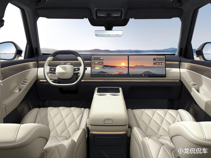 与当下大多数新能源车型一样,ID.ERA 9X的内饰也采用了极简风格的设计,不过有新车在车厢内配备了多块大尺寸的屏幕,所以内饰的科技感是呈现得比较足的;此外,ID.ERA 9X在内饰用料方面的表现也比较不错,内饰用到了大面积皮革材质或软性材质的包裹,所以内饰的档次感也呈现得较足。配置方面,例如中控大屏、副驾娱乐屏、后座吸顶屏、自动分区空调、后座独立空调、电调座椅等配置在ID.ERA 9X上均有出现。